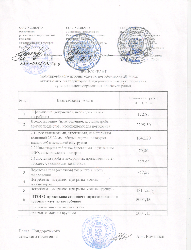 | Прейскурант гарантированного перечня услуг по погребению на 2014 год | 829.5 KiB | 1353 |